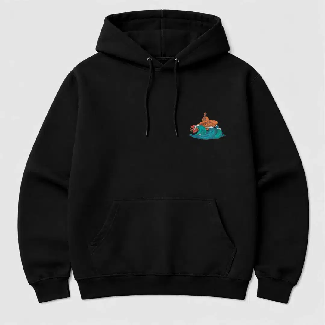 Με ζωντανά χρώματα και χειροποίητη εικονογράφηση του υποβρυχίου πάνω στο κύμα, αυτό το hoodie συνδυάζει καλλιτεχνικό design με ποιότητα κατασκευής.