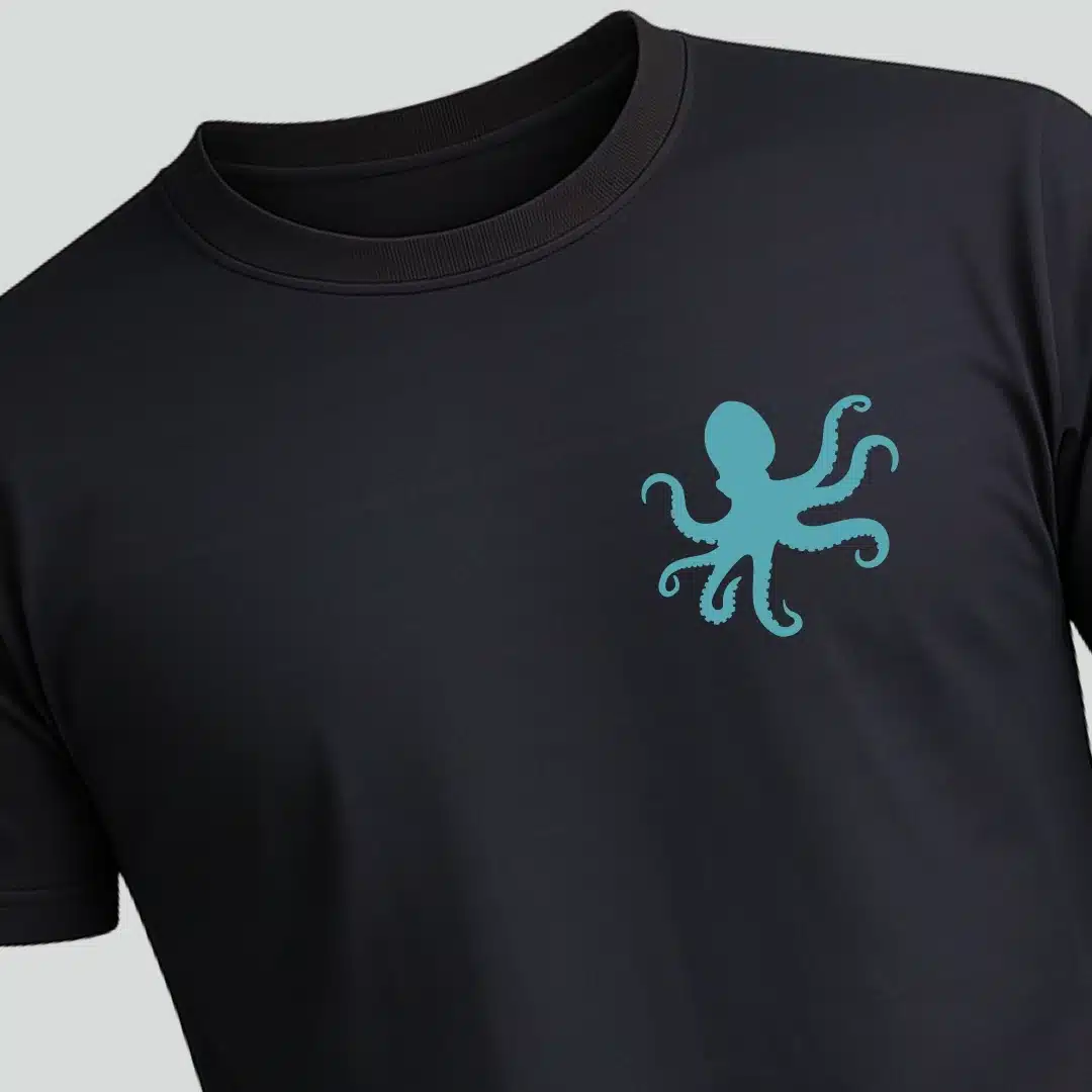 Με ένα χταπόδι που έχει απλώσει τα πλοκάμια του πάνω σε κάθε γράμμα (γιατί έτσι κάνουν τα χταπόδια, δεν σε ρωτάνε), το σχέδιο κάνει το μάτι να κολλάει χειρότερα κι από βεντούζα.